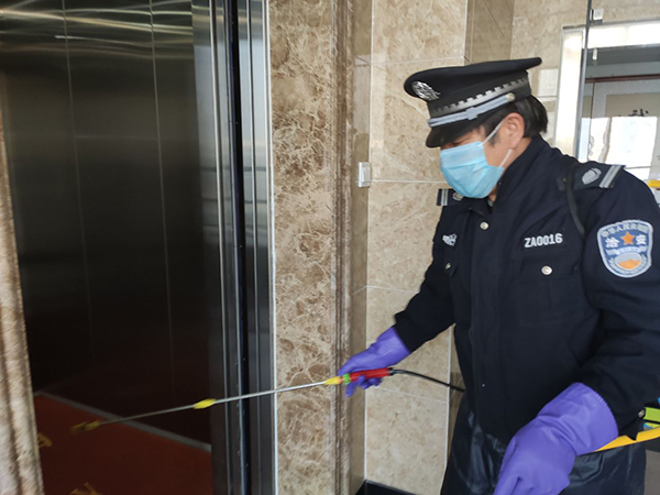公司为在岗员工发放了口罩、喷壶、消毒酒精等防护用品,每日对各工作场所、班车、车库、电梯、宿舍等进行定点消毒。