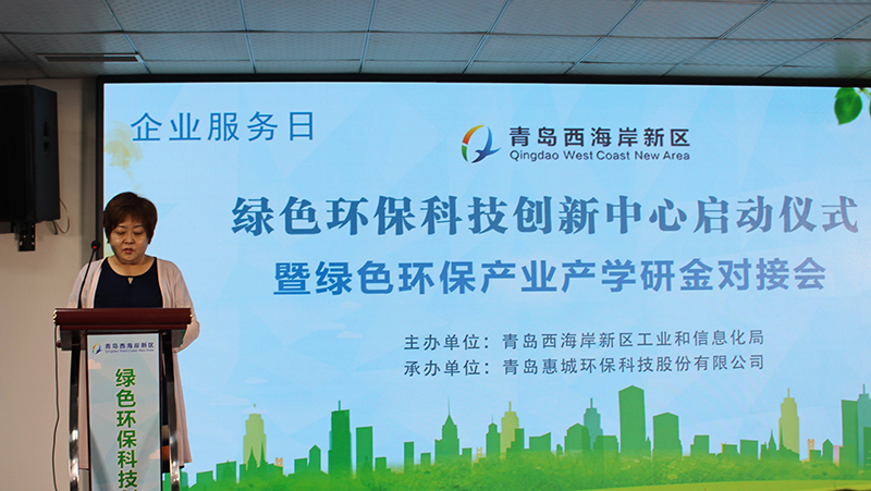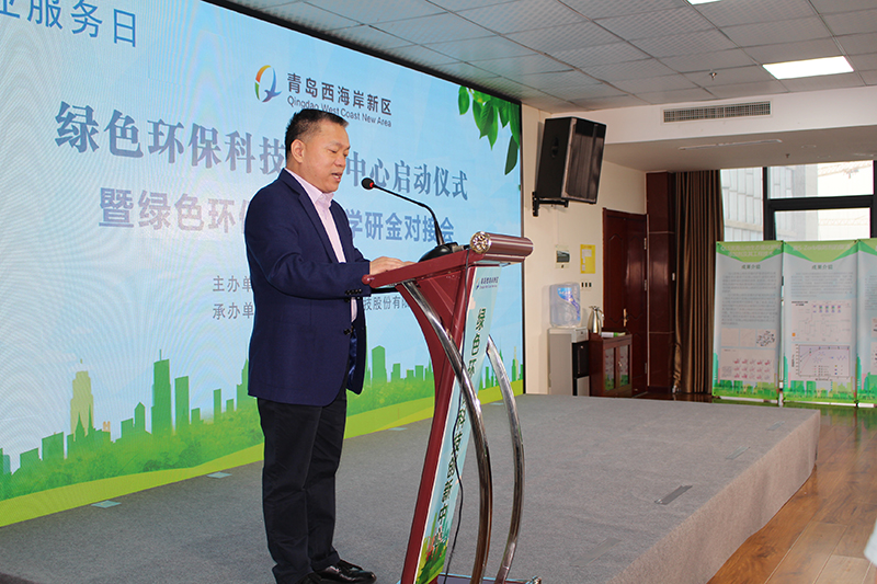 青岛西海岸新区工信局副局长张青宣读《关于青岛西海岸新区绿色环保科技创新中心的批复》