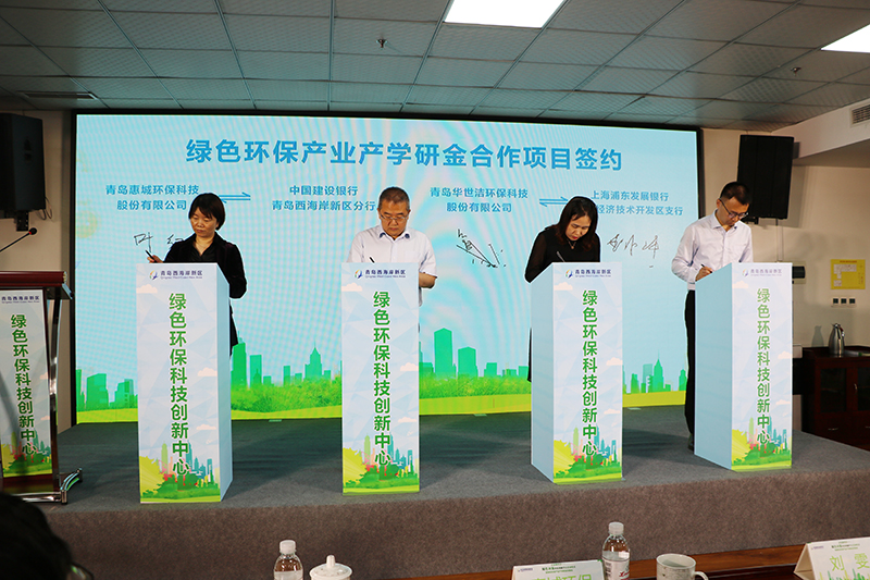 在随后召开的新区绿色环保产业产学研金对接会上,来自上海浦发银行、山东开来资本的负责人就绿色环保产业金融政策进行了宣讲,来自中国石油大学(华东)、青岛理工大学、山东科技大学的专家学者就各自在绿色环保科技领域取得的重大成果进行讲解。