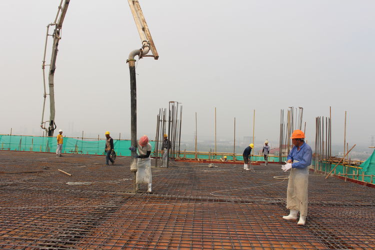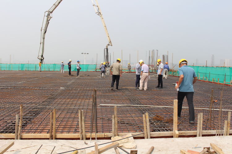 在施工单位的带领下,公司领导来到分子筛厂房顶层参观建设情况。分子筛厂房建筑面积22308㎡,是整个项目中面积最大、工程量最大、施工难度最大,设计、工艺最复杂的建筑单体。在台风、高温极端天气及交叉作业、疫情等诸多不利因素影响下,为加快推进建设进程,项目建设指挥部全体成员放弃节假日休息,以“5+2”、“白+黑”的战斗精神,全部深入一线进行质量检查和安全督导,他们迎难而上、披荆斩棘,是伯乐体育精神的真实写照;施工单位增加人员、机械设备,安排工人三班倒作业,保证施工现场24小时不停工;监理、勘察、造价等参建单位加班加点,“随叫随到,不叫也到”......各方精诚合作,共同推进,终于迎来了8月10日这一封顶时刻。